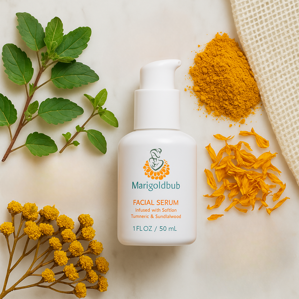 At Marigoldbub, we blend time-honored Ayurvedic traditions with clean, modern skincare to support mothers and babies during the most sacred window of life—the first 1,000 days. Our gentle, plant-powered products nurture your skin, calm your spirit, and bring intentionality to your daily rituals.